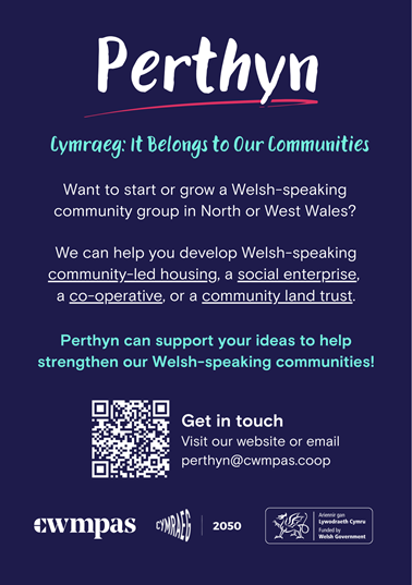We are now open to applications from community groups pan-Wales for Perthyn grant funding to support with start-up fees during the early stages of developing social enterprises, co-operatives, community-led housing or community land trusts through the medium of Welsh.